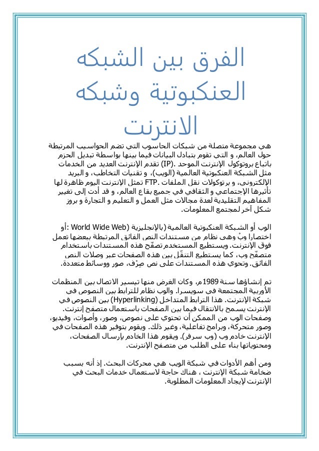 الفرق بين الشبكه العنكبوتية وشبكه الانترنت